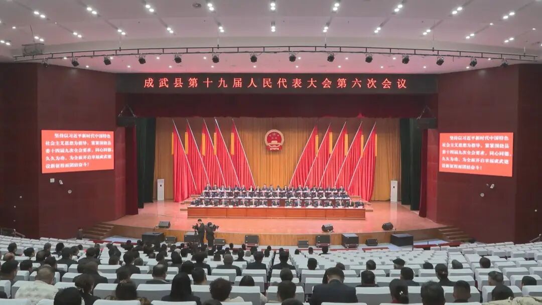 1月24日下午成武縣第十九屆人民代表大會(huì)第六次會(huì)議圓滿完成各項(xiàng)議程在縣委黨校報(bào)告廳勝利閉幕黃福常、范繼臣、張同信、杜飛、劉湛清、邵明合、馬瑙、王志鴻、聶松虎、張冠忠、王若魁、陳亞斌、高海民、張彥玲、魏鳳云、吳慧星、劉玉佩出席會(huì)議,并在主席臺(tái)前排就座。在主席臺(tái)就座的還有其他主席團(tuán)成員。出席會(huì)議的還有縣委、縣政府的領(lǐng)導(dǎo)。縣人大常委會(huì)黨組副書記張冠忠主持會(huì)議。成武縣第十九屆人民代表大會(huì)第六次會(huì)議應(yīng)到代表 283名,實(shí)到代表244名,缺席39名,符合法定人數(shù)。會(huì)議對(duì)2025年度表現(xiàn)突出的人大代表、鎮(zhèn)街人大和代表建議辦理工作先進(jìn)單位進(jìn)行了表?yè)P(yáng)。會(huì)議表決通過(guò)了縣十九屆人大六次會(huì)議縣人大專門委員組成人員人選表決辦法(草案),表決通過(guò)了縣人大有關(guān)專門委員會(huì)組成人員。表決通過(guò)了縣十九屆人大六次會(huì)議選舉辦法(草案),表決通過(guò)了總監(jiān)票人、監(jiān)票人名單(草案)。根據(jù)大會(huì)選舉辦法和計(jì)票結(jié)果,張彥玲當(dāng)選為成武縣第十九屆人民代表大會(huì)常務(wù)委員會(huì)副主任,劉平、張進(jìn)成當(dāng)選為成武縣第十九屆人民代表大會(huì)常務(wù)委員會(huì)委員,吳慧星當(dāng)選為成武縣人民法院院長(zhǎng)。新當(dāng)選人員現(xiàn)場(chǎng)舉行了向憲法宣誓儀式。會(huì)議表決通過(guò)了《關(guān)于成武縣人民政府工作報(bào)告的決議(草案)》,表決通過(guò)了《關(guān)于成武縣國(guó)民經(jīng)濟(jì)和社會(huì)發(fā)展第十五個(gè)五年規(guī)劃綱要的決議(草案)》。會(huì)議表決通過(guò)了《關(guān)于成武縣2025年國(guó)民經(jīng)濟(jì)和社會(huì)發(fā)展計(jì)劃執(zhí)行情況與2026年計(jì)劃的決議(草案)》。表決通過(guò)了《關(guān)于成武縣2025年預(yù)算執(zhí)行情況和2026年預(yù)算的決議(草案)》。會(huì)議表決通過(guò)了《關(guān)于成武縣人大常委會(huì)工作報(bào)告的決議(草案)》。表決通過(guò)了《關(guān)于成武縣人民法院工作報(bào)告的決議(草案)》。表決通過(guò)了《關(guān)于成武縣人民檢察院工作報(bào)告的決議(草案)》。張冠忠在講話中強(qiáng)調(diào),各位代表,在大會(huì)主席團(tuán)和全體代表共同努力下,本次會(huì)議圓滿完成了各項(xiàng)議程,即將勝利閉幕。希望各位代表返回各自崗位后,積極宣傳好、貫徹好本次大會(huì)精神,特別是政府工作報(bào)告確定的各項(xiàng)工作安排,切實(shí)把會(huì)議精神轉(zhuǎn)化為履職盡責(zé)的自覺(jué)行動(dòng)和推動(dòng)發(fā)展的生動(dòng)實(shí)踐。要時(shí)刻牢記人民重托,深入基層、深入群眾,傾聽民聲、匯集民智,當(dāng)好黨委政府聯(lián)系人民群眾的橋梁紐帶。要緊緊圍繞全縣發(fā)展大局和大會(huì)確定的目標(biāo)任務(wù),依法履行代表職責(zé),在產(chǎn)業(yè)發(fā)展、鄉(xiāng)村振興、民生改善、基層治理等各項(xiàng)工作中走在前、作表率,展現(xiàn)新時(shí)代人大代表的風(fēng)采與擔(dān)當(dāng)。讓我們更加緊密地團(tuán)結(jié)起來(lái),認(rèn)真貫徹落實(shí)縣委十四屆九次全會(huì)精神,全力實(shí)施“四大爭(zhēng)先突破”行動(dòng),以更加飽滿的熱情、更加昂揚(yáng)的斗志、更加務(wù)實(shí)的作風(fēng),同心同德,銳意進(jìn)取,為奮力譜寫中國(guó)式現(xiàn)代化成武實(shí)踐新篇章、全面開啟幸福成武建設(shè)新征程而努力奮斗!會(huì)議在雄壯的國(guó)歌聲中勝利閉幕!