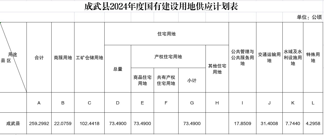 成武縣2024年度國有建設(shè)用地供應(yīng)計劃