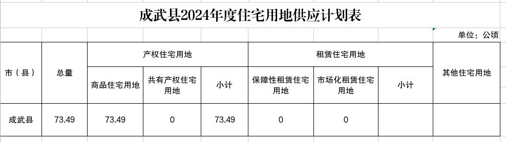 成武縣2024年度住宅用地供應(yīng)計劃表